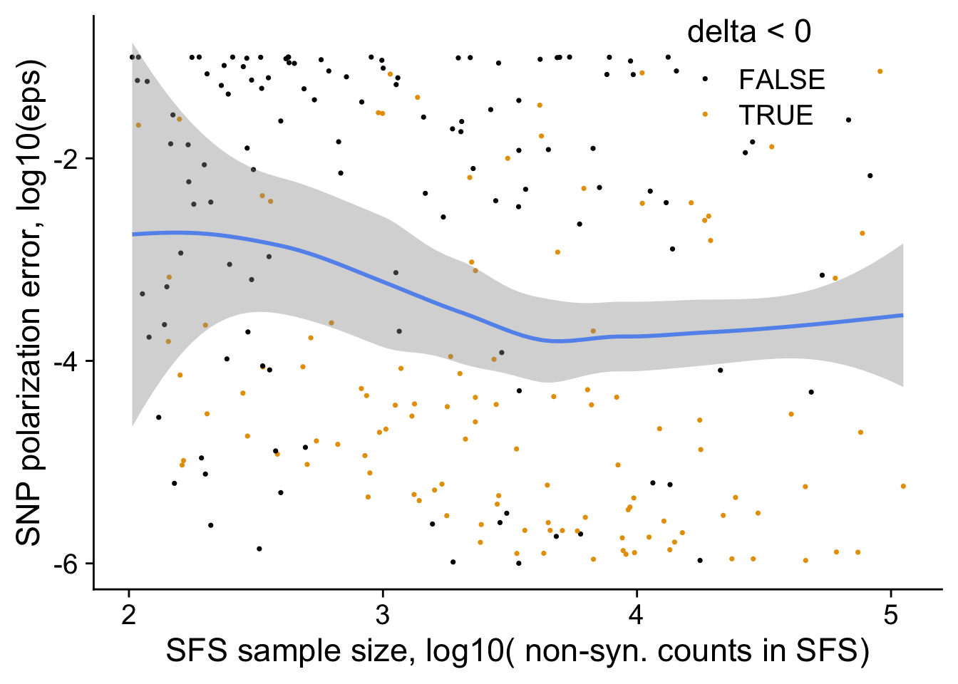 xlab("SFS sample size, log10( non-syn. counts in SFS)")+