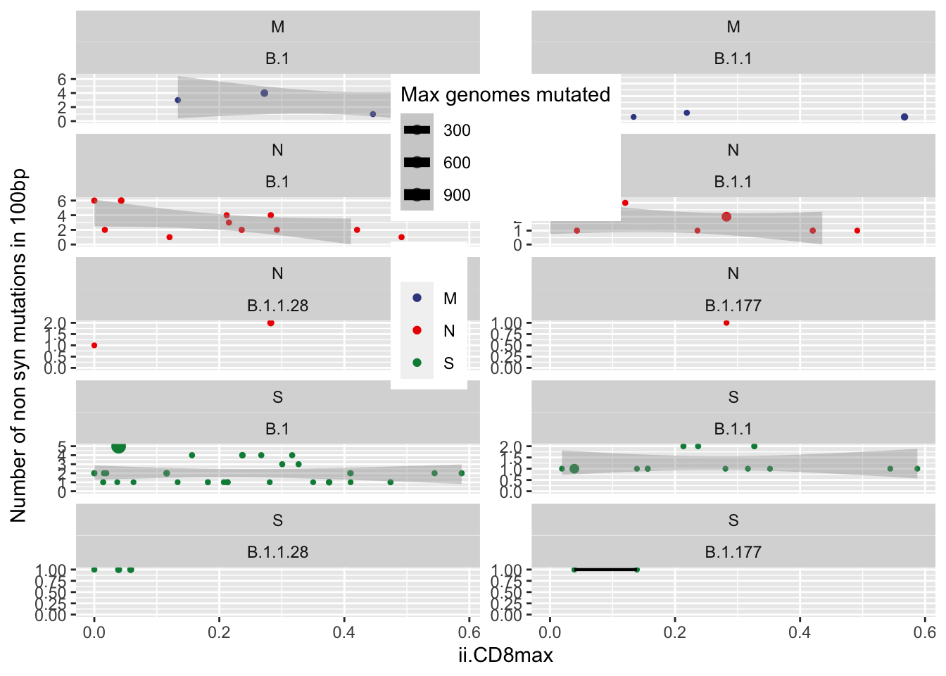 scale_size("Max genomes mutated", range=c(0.8,3)) +